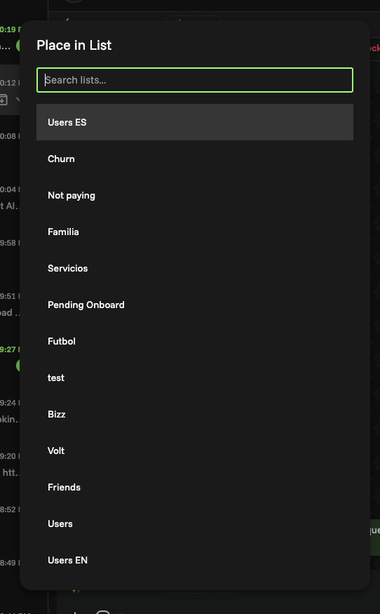 Before: creating or assigning a list meant hunting with your mouse in the sidebar, breaking your flow mid-conversation.