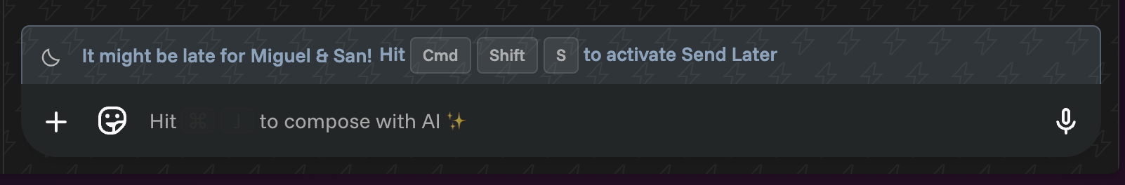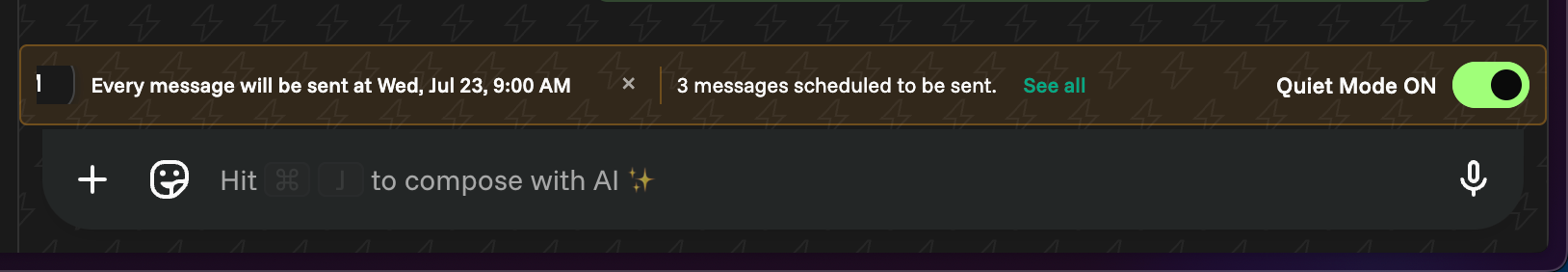 I created “Send Later Mode” — an orange bar at the top that put you in scheduling mode. Toggle on, all your messages get scheduled. I thought I’d cracked it.